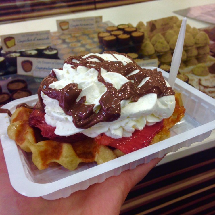 This morning, we woke up and got classic Belgium waffle. I chose Nutella, strawberries and whip cream on mine although most locals eat them plain. It was amazing and I think the secret lies in the batter being much thicker.