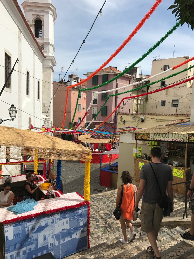 That night, we explored the streets of Lisbon as they celebrated the holidays. As we learned on our walking tour, each city in Portugal celebrates a specific saint and these happen across the country in June. Although Lisbon’s doesn’t happen until June 12th, that didn’t stop them from decorating and celebrating early!