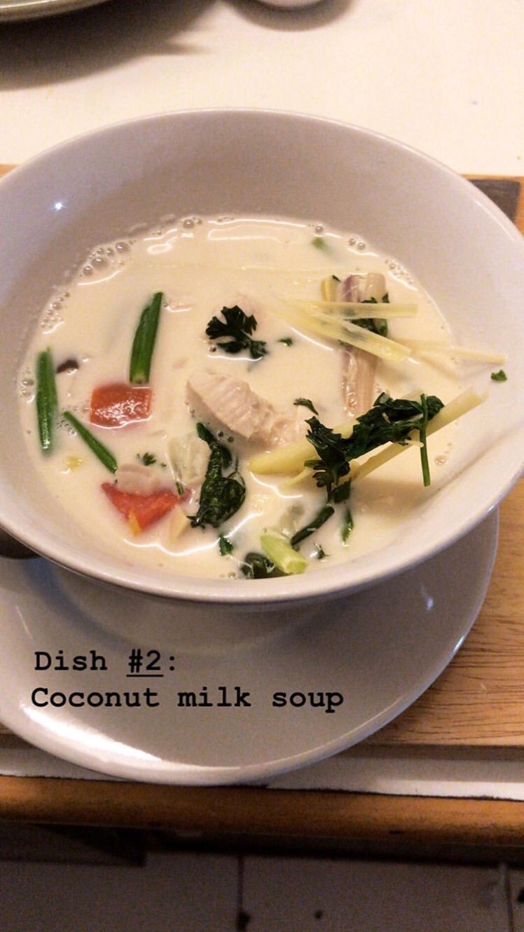 And now for all of the food photos! We cooked 6 courses and had the choice of 3 things for each. We tried to cook different things between the 3 of us so there was more to try! I think the coconut soup was one of my favorite!