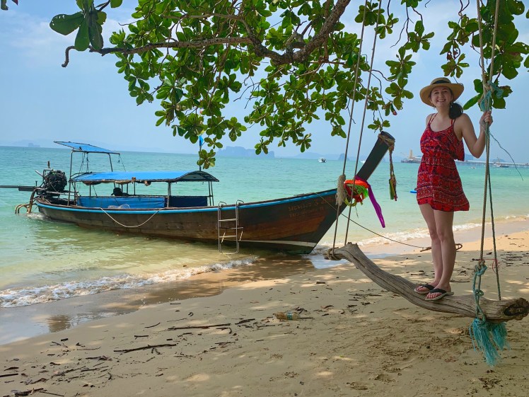 For our first day, we got a private long tail boat and driver. It was only $80 for the driver and boat for the entire day! We decided to go to the Hong islands and to get there early before the other group tours got there! So many boat photos 😊