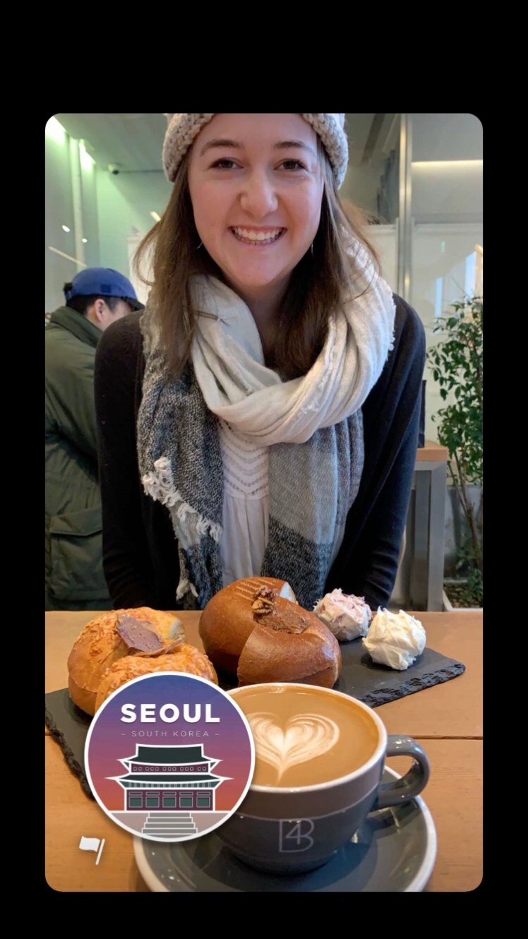 For our next day in Korea we started off with the best bagels at a cute coffee shop. After 90 degrees in Thailand it was quite a shock to be in the 20s and snowing in Korea. I back a jacket, but not quite enough for that low of temps, oh well!