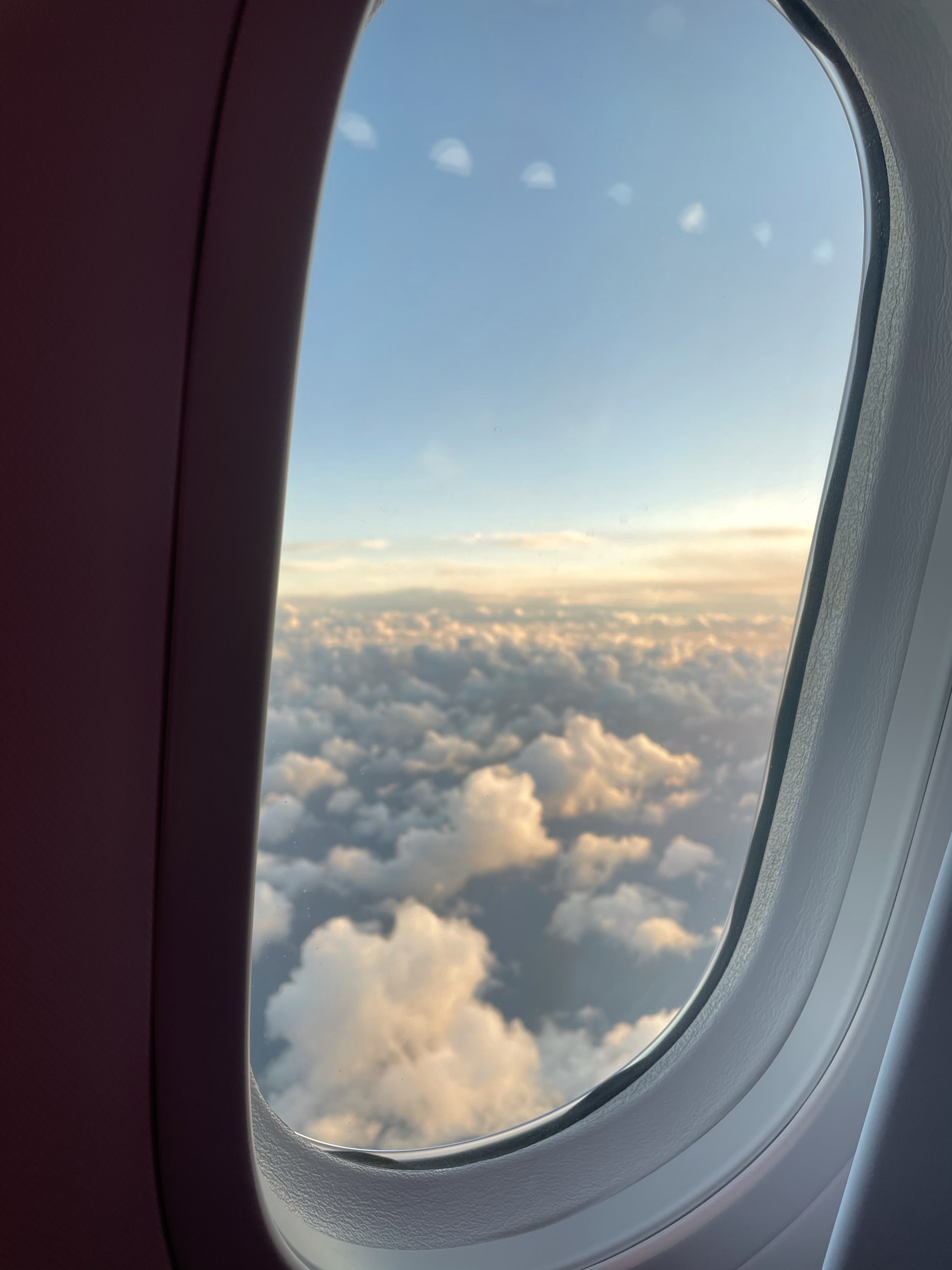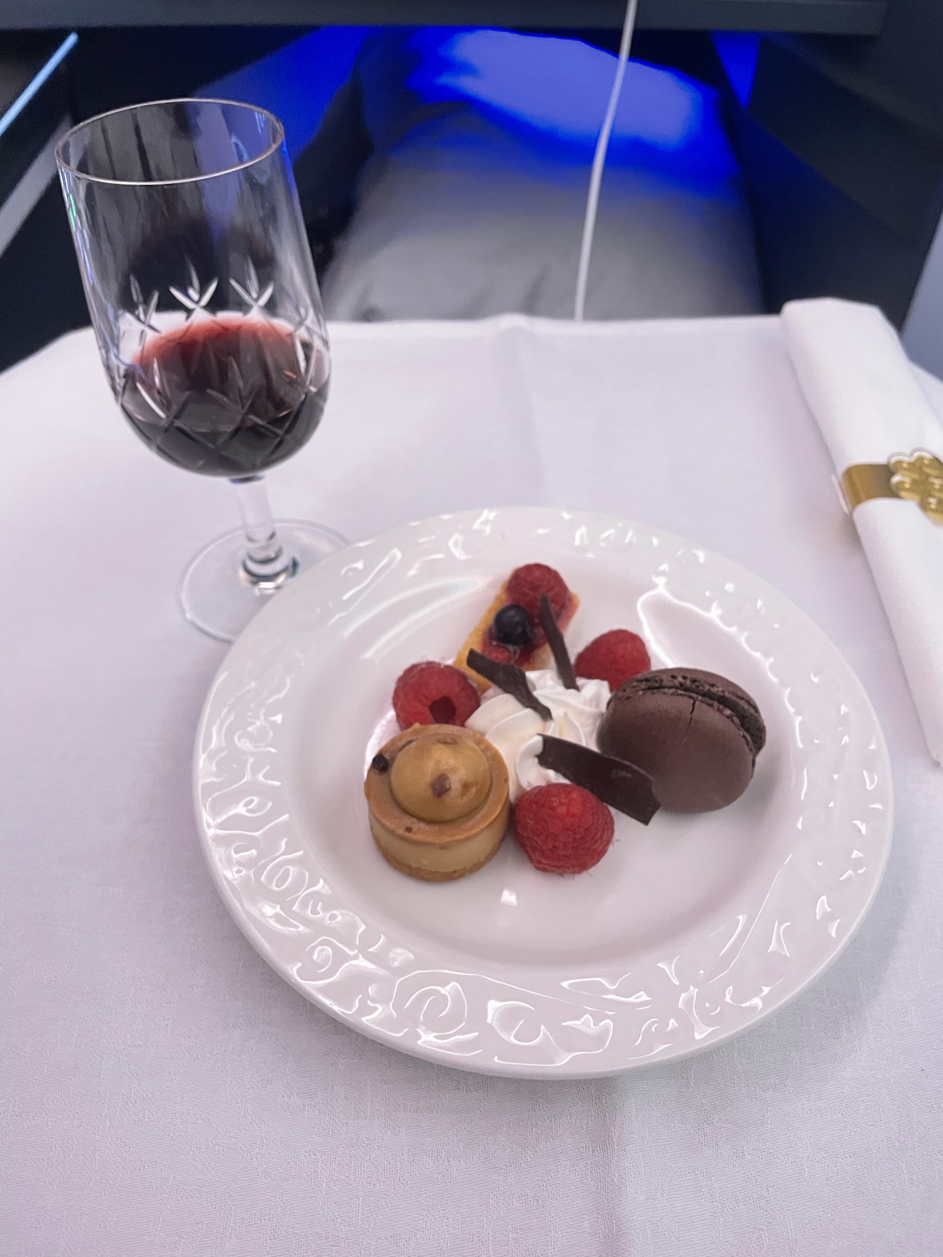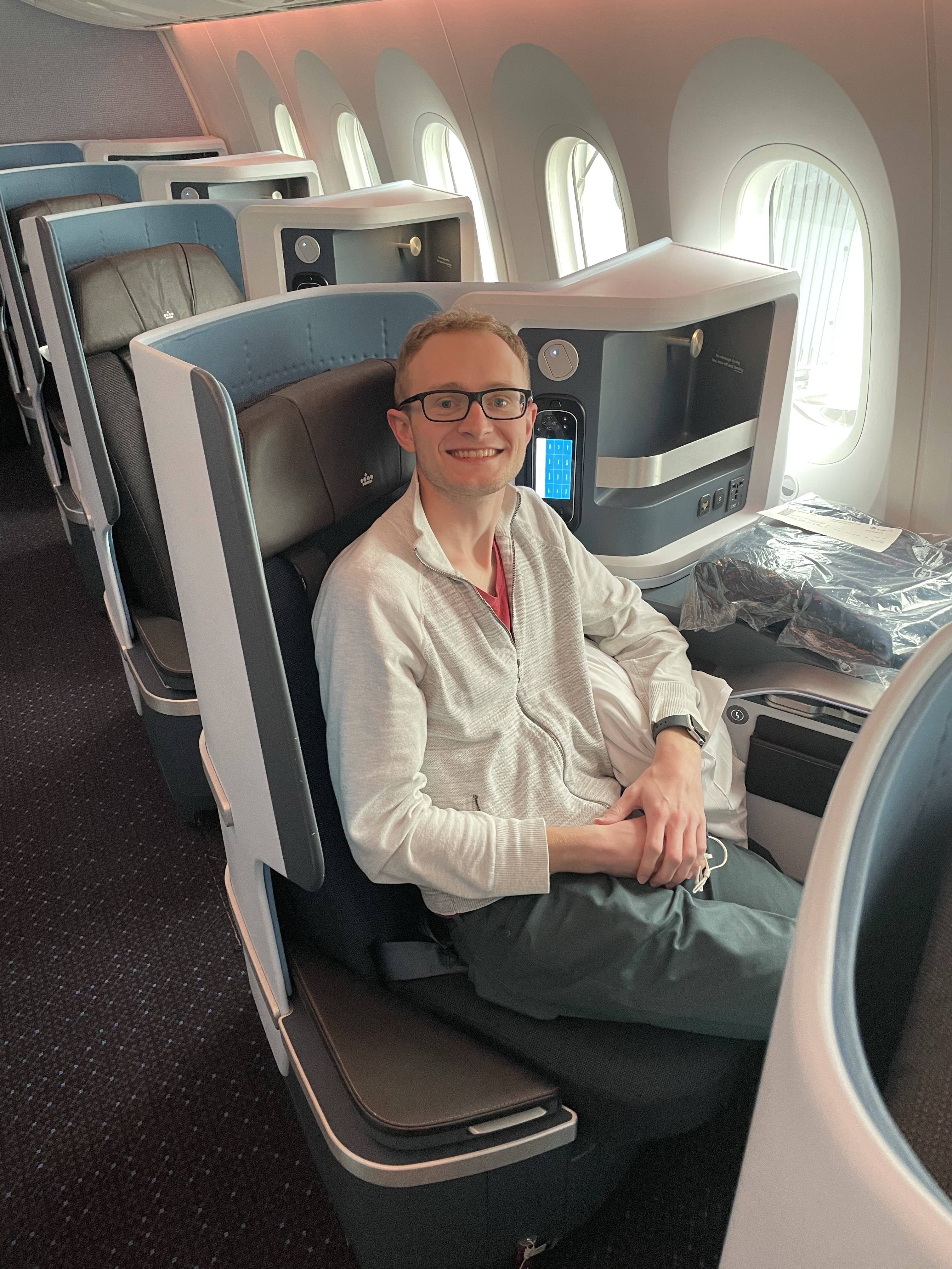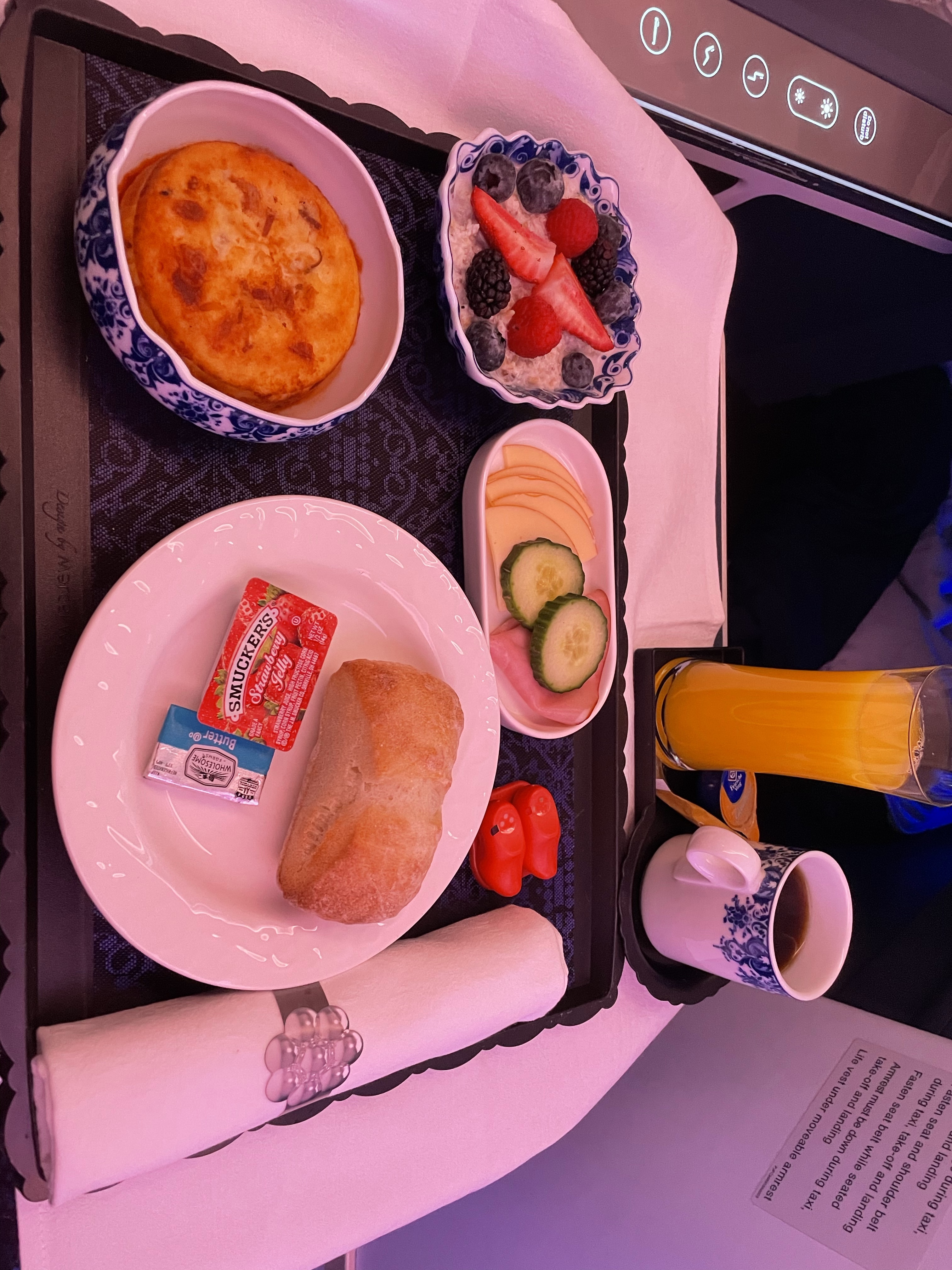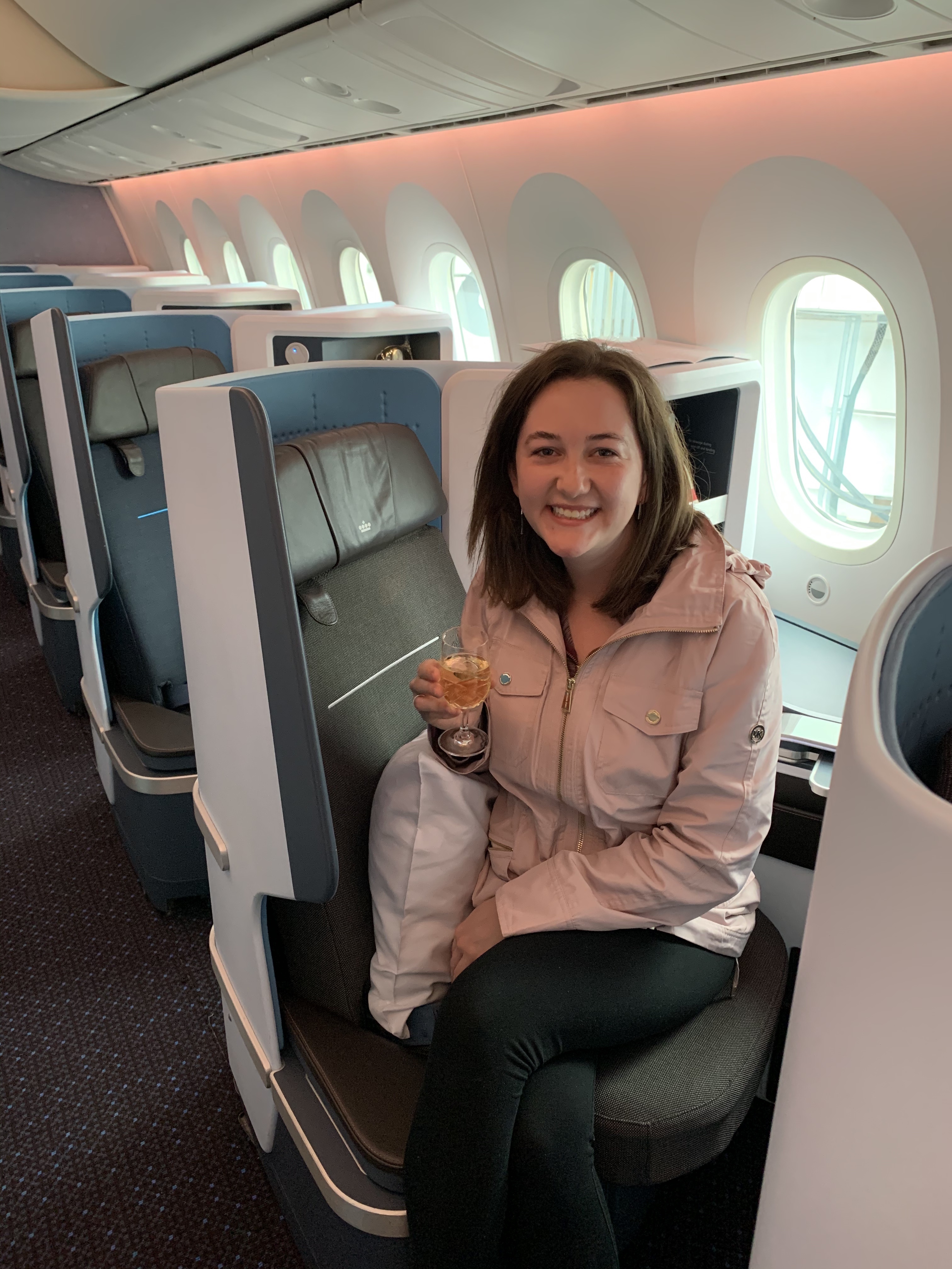 This trip was the first time flying business class and it did not disappoint! We got lounge access as you saw in the last post and started our flight with complimentary champagne. In the end we were two of 4 people in business class and 47 total on our flight. Normally, the type of plane we were on seats 300+!