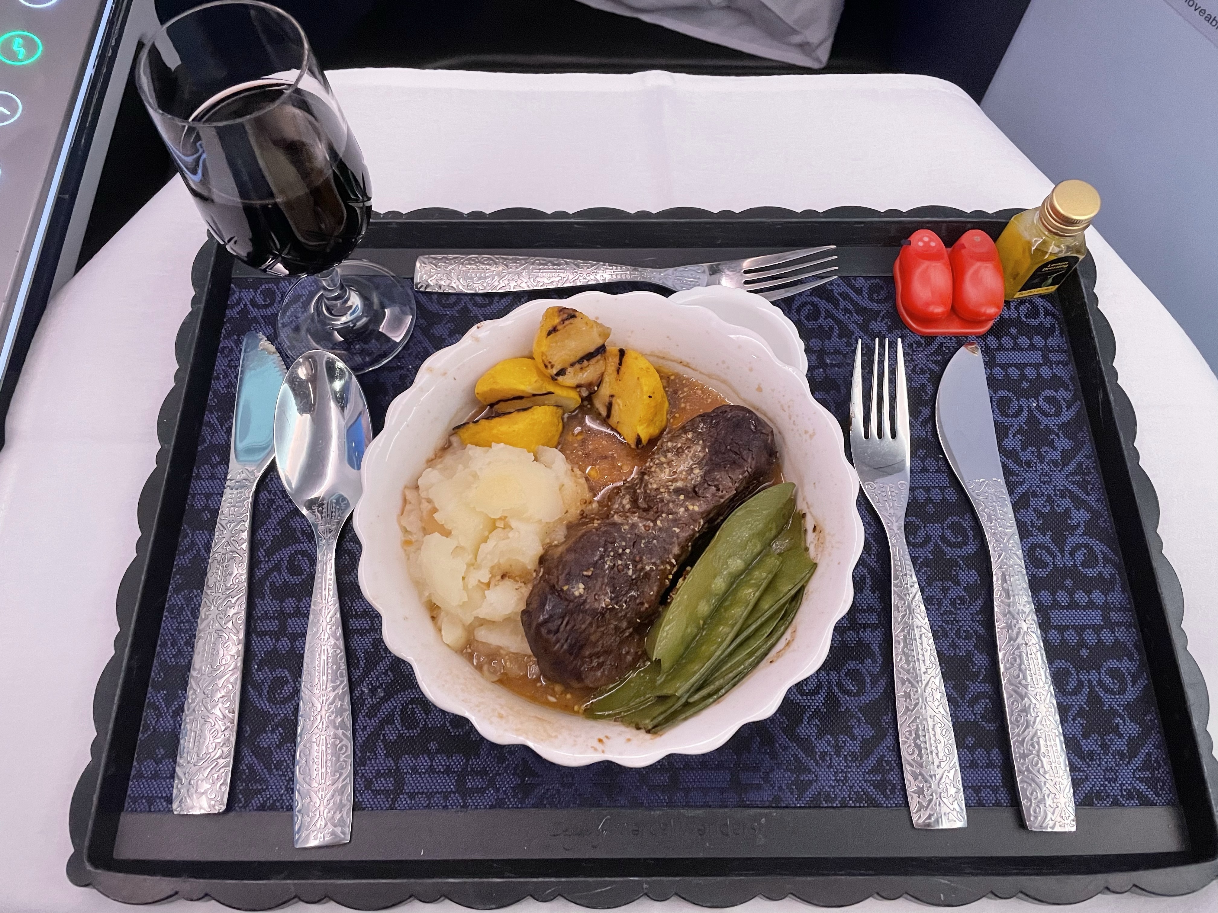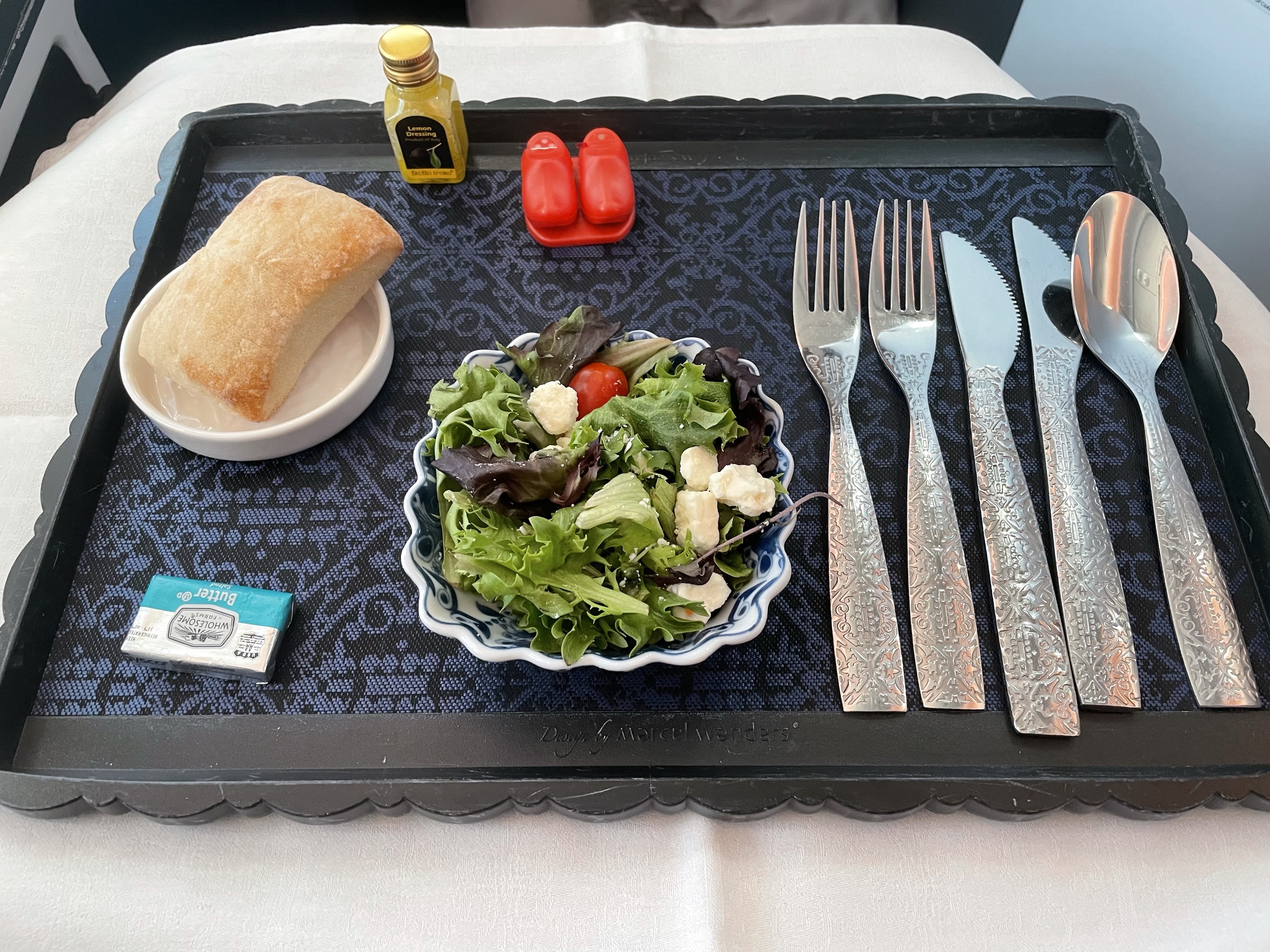 I took pictures of our food, but it was all quite tasty and came with real glasses, silverware, etc and they even put a white table cloth down on the tray table.