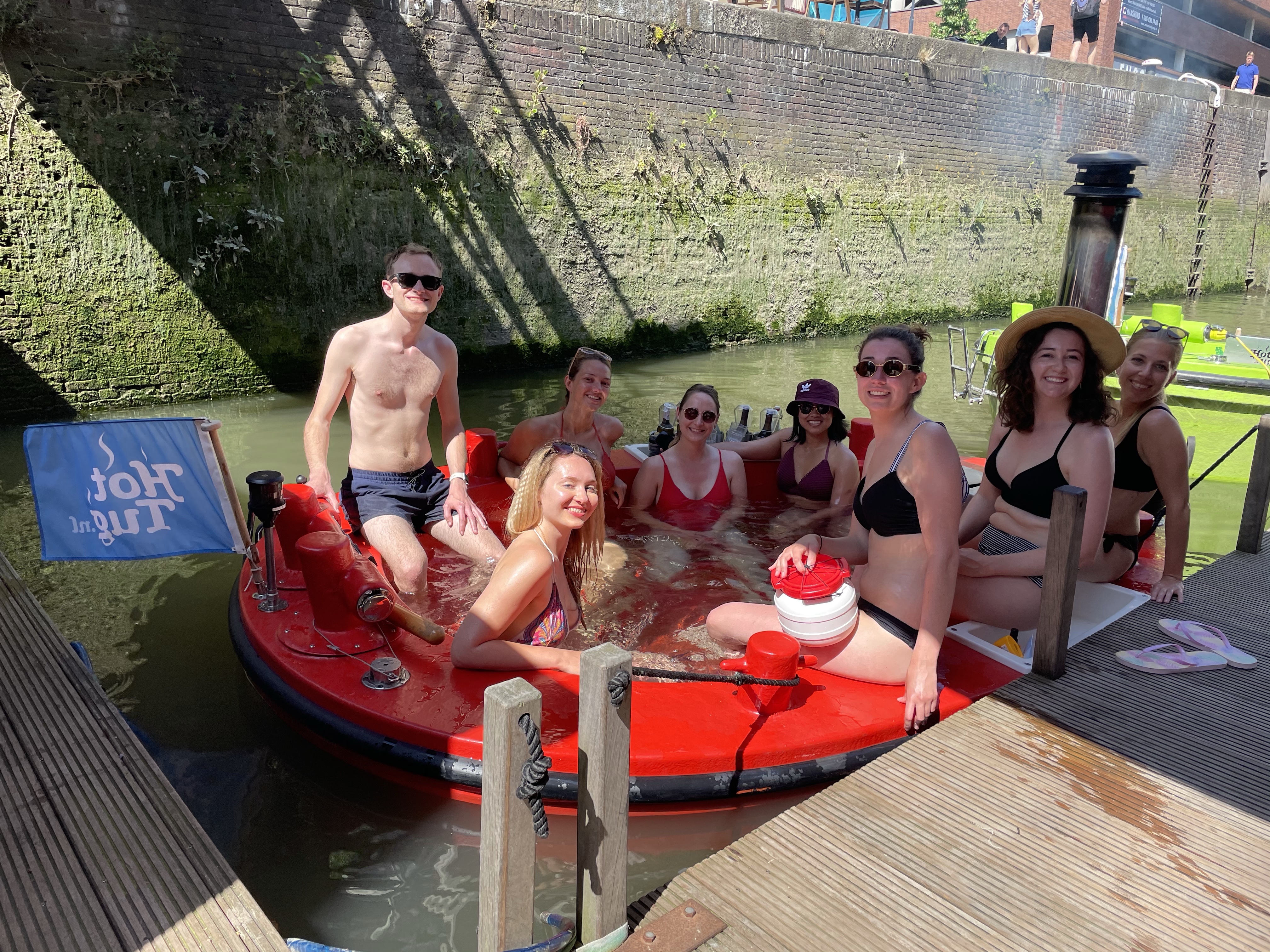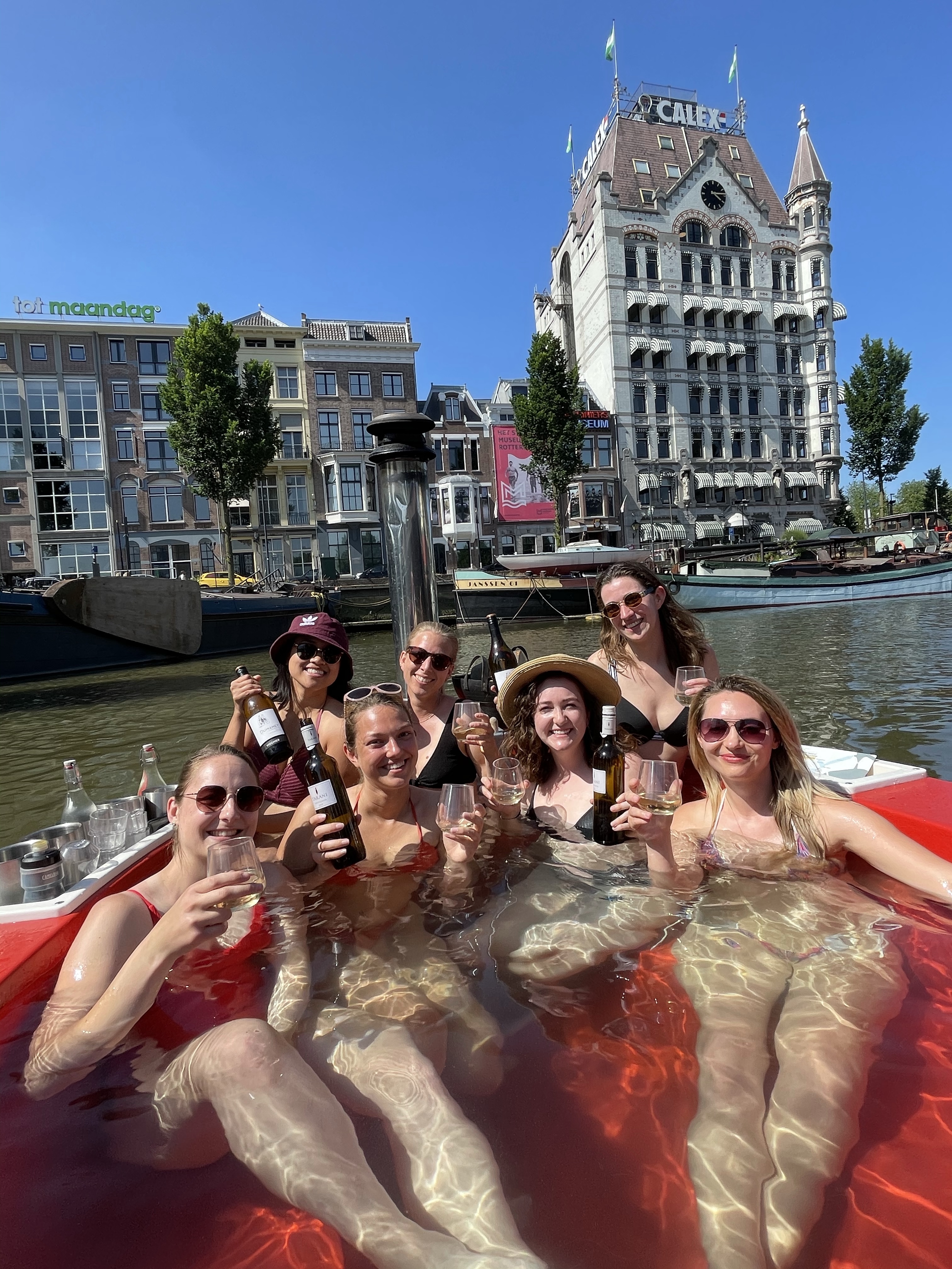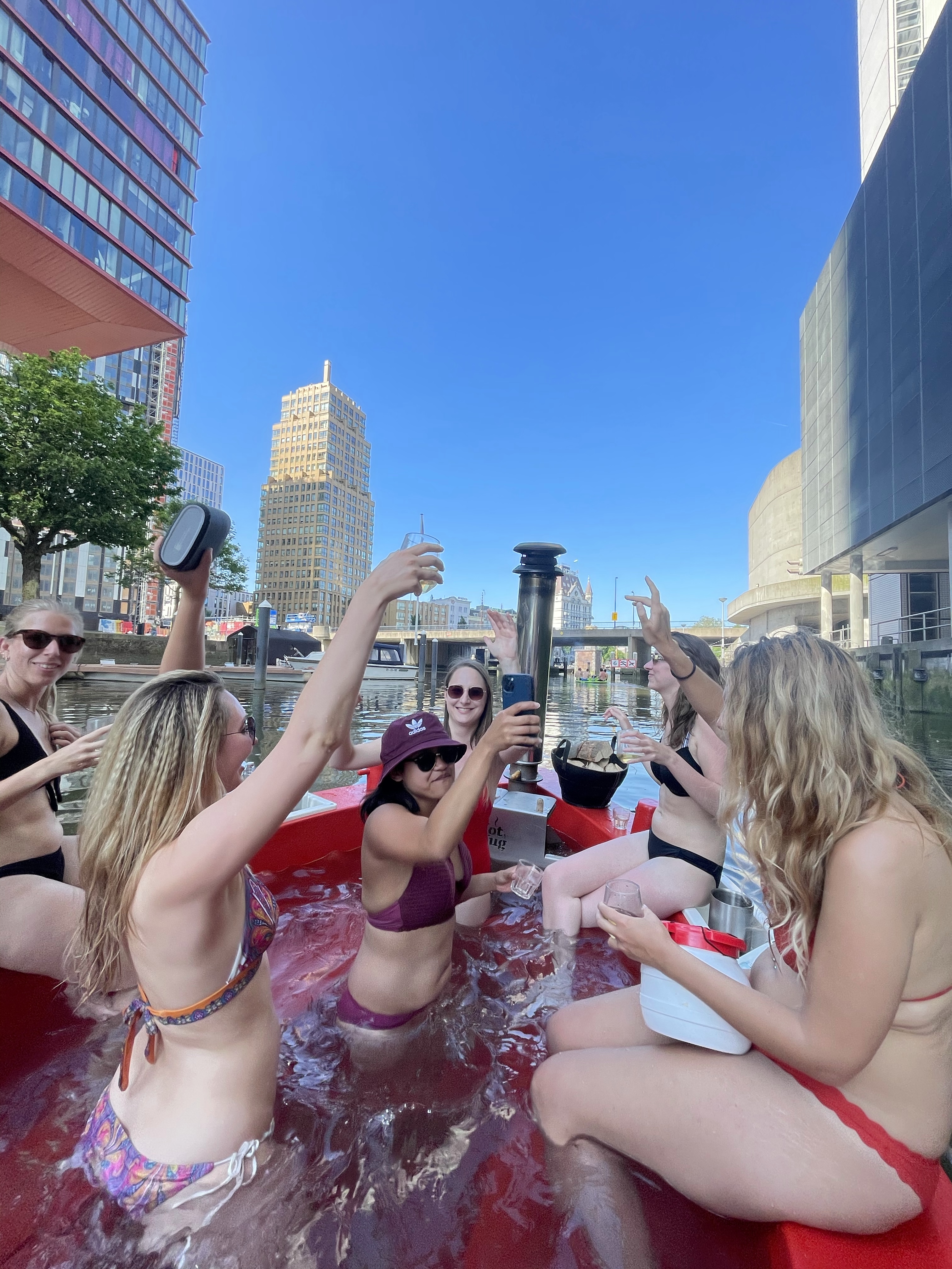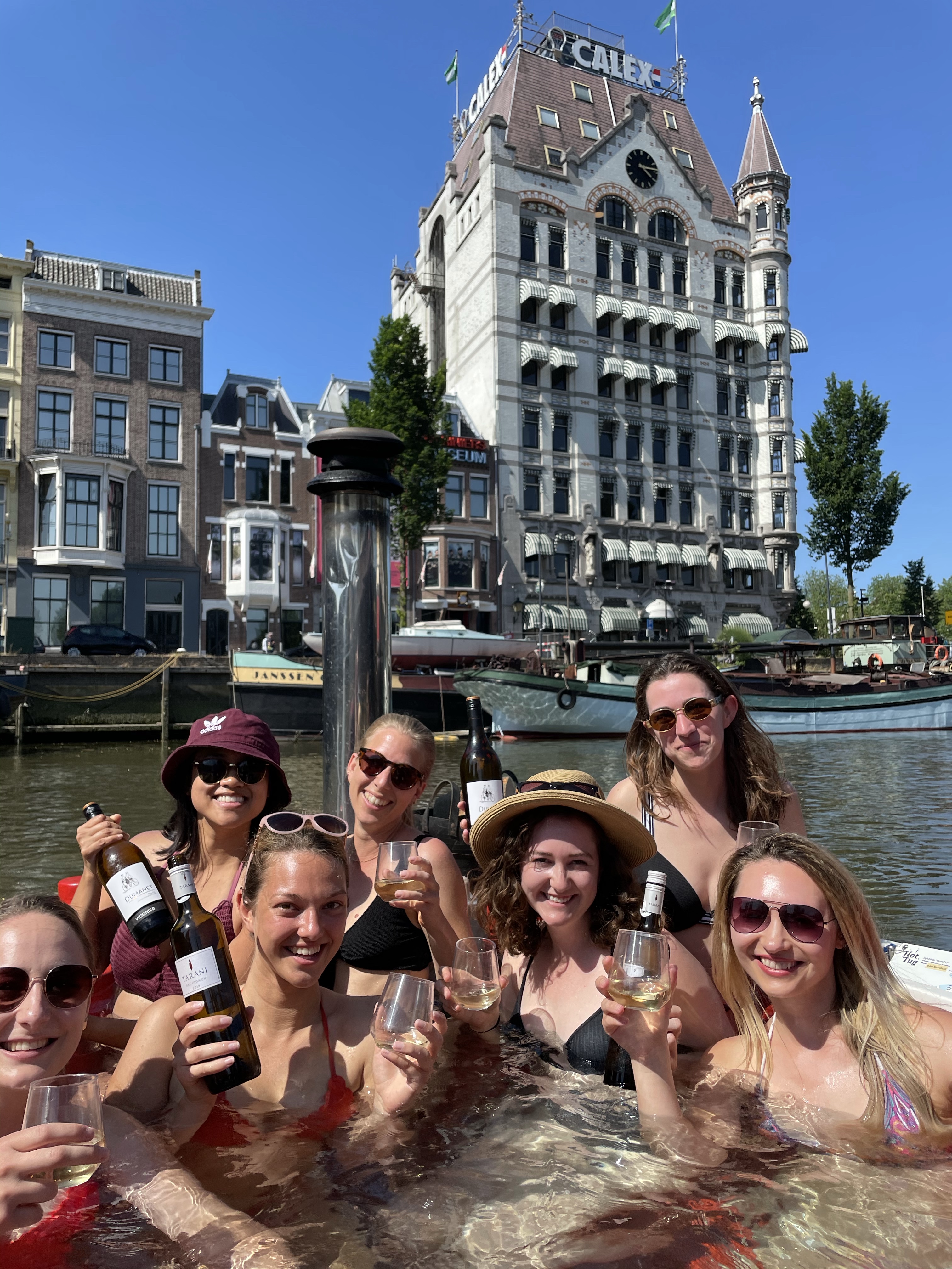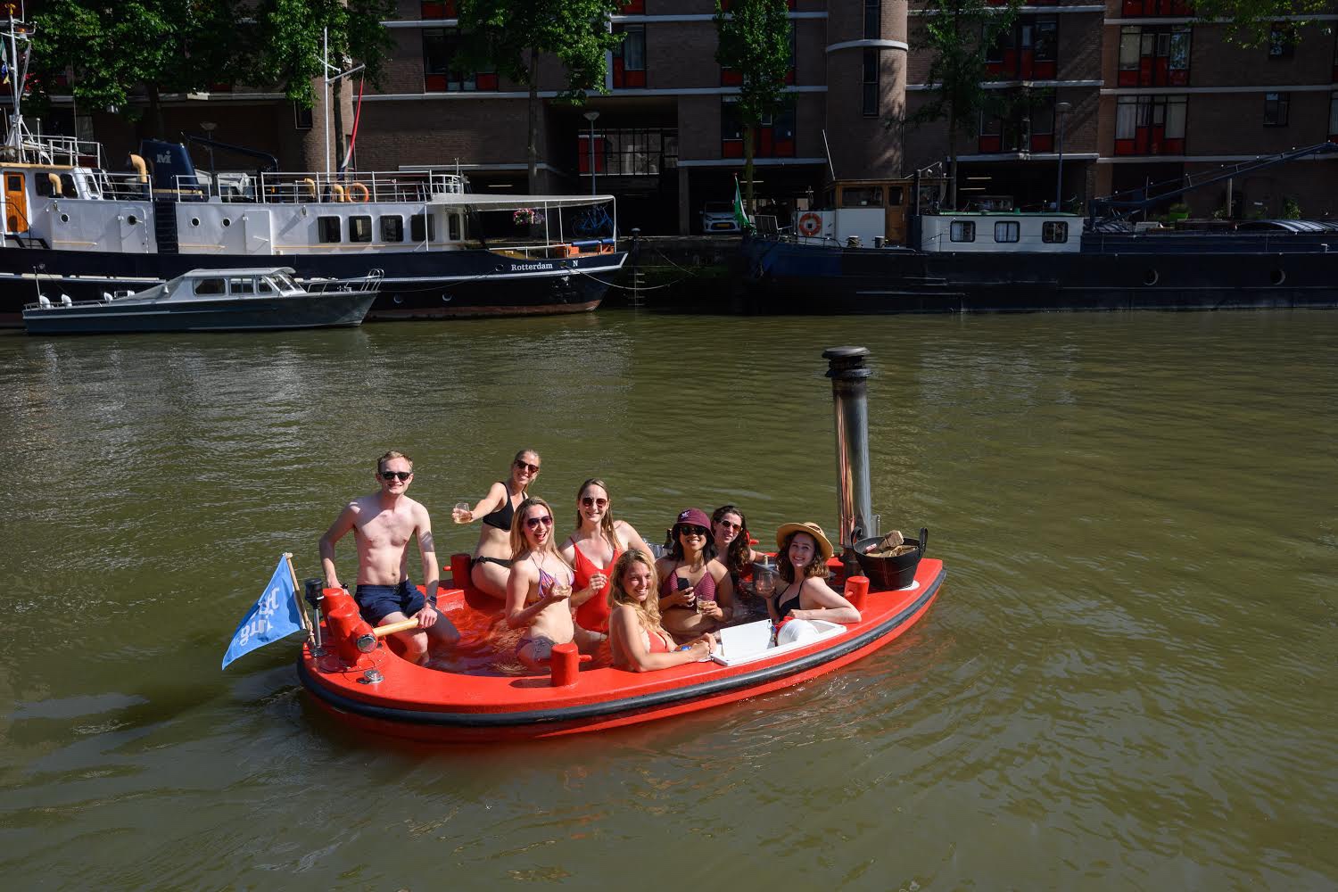 The main reason that we decided to go Rotterdam was we rented a “Hot Tug” for the afternoon. About a month ago at a wine walk in the rain some of the other girls and I were cold and dreaming of being warm in a hot tug on the water. We rallied a group and booked it for a month in advance! Fast forward and it is starting to become summer in Amsterdam so we probably didn’t need the hot tub part as much, but it was still greatly appreciated.