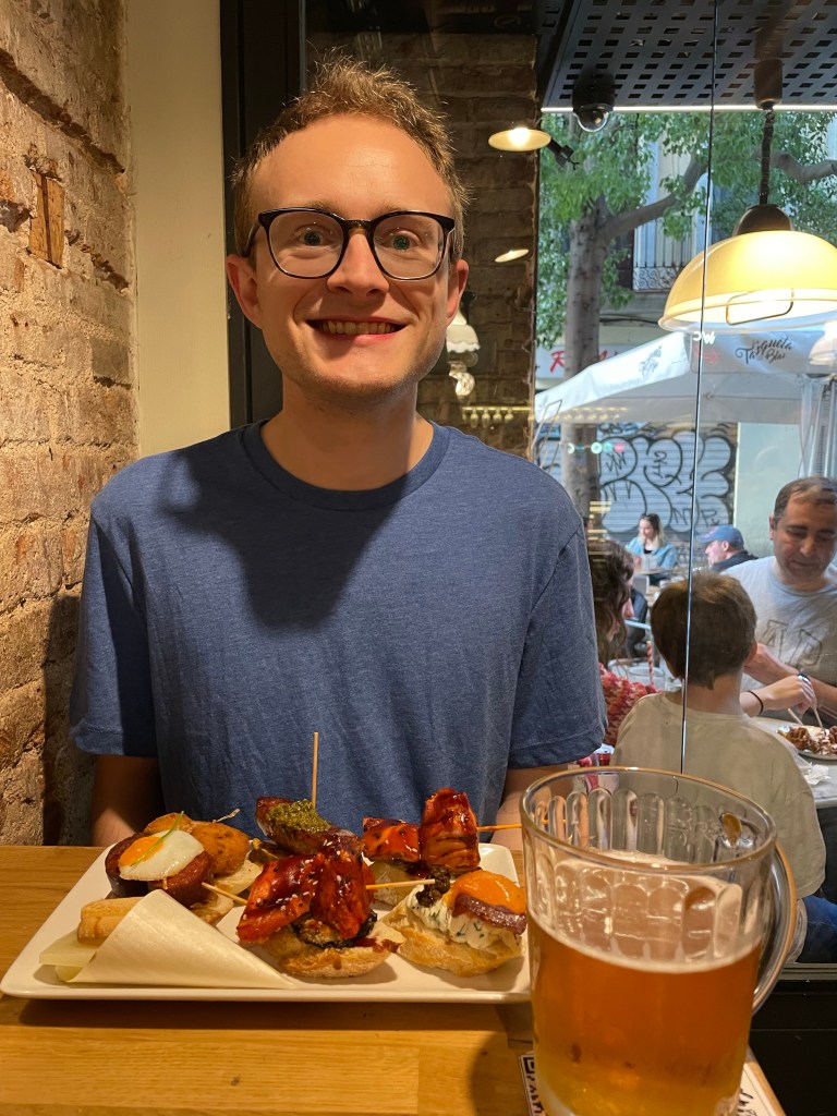We arrived Friday afternoon and wandered around the city a bit before getting pintxos on Blai street. *beer appears larger in picture than real life 😂 We also had the best patatas bravas at this place! (Restaurant La Tasqueta de Blai)