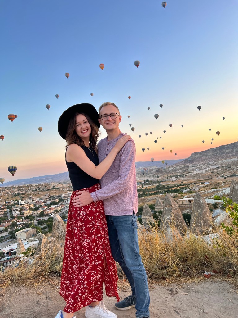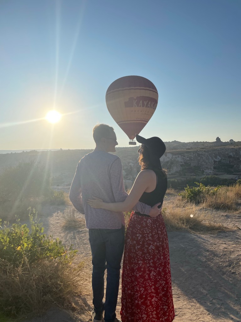 Cappadocia in Turkey has been on my bucket list for many years. The hot air balloon pictures look magical and I have been wanting to experience it myself- hence this trip was born! There are many ways to experience the balloons: in a balloon, from a terrace, from a viewpoint, etc. We were lucky enough to get to see them all in the 3 mornings we were in Cappadocia so I want to tell you all about it!