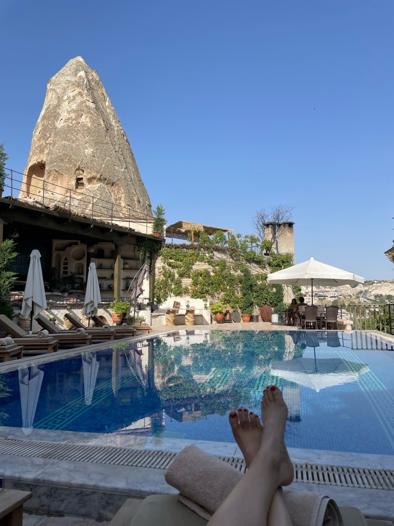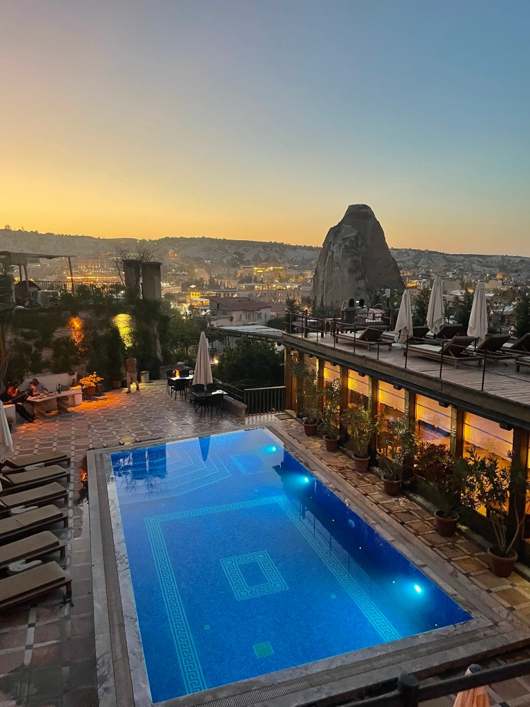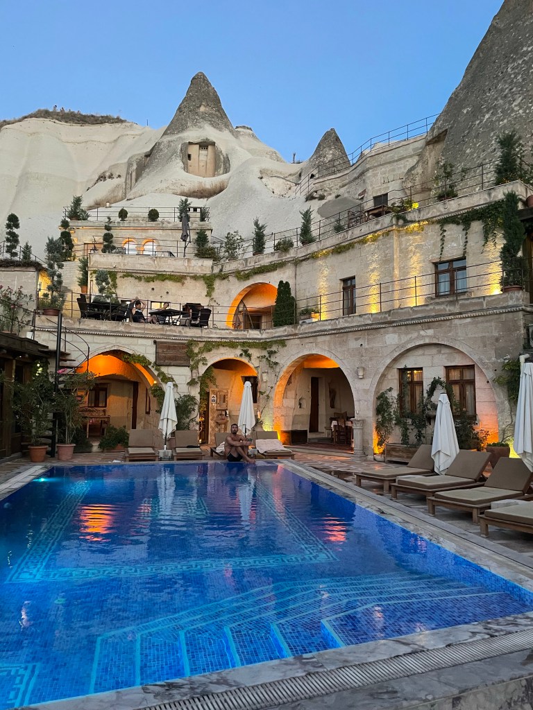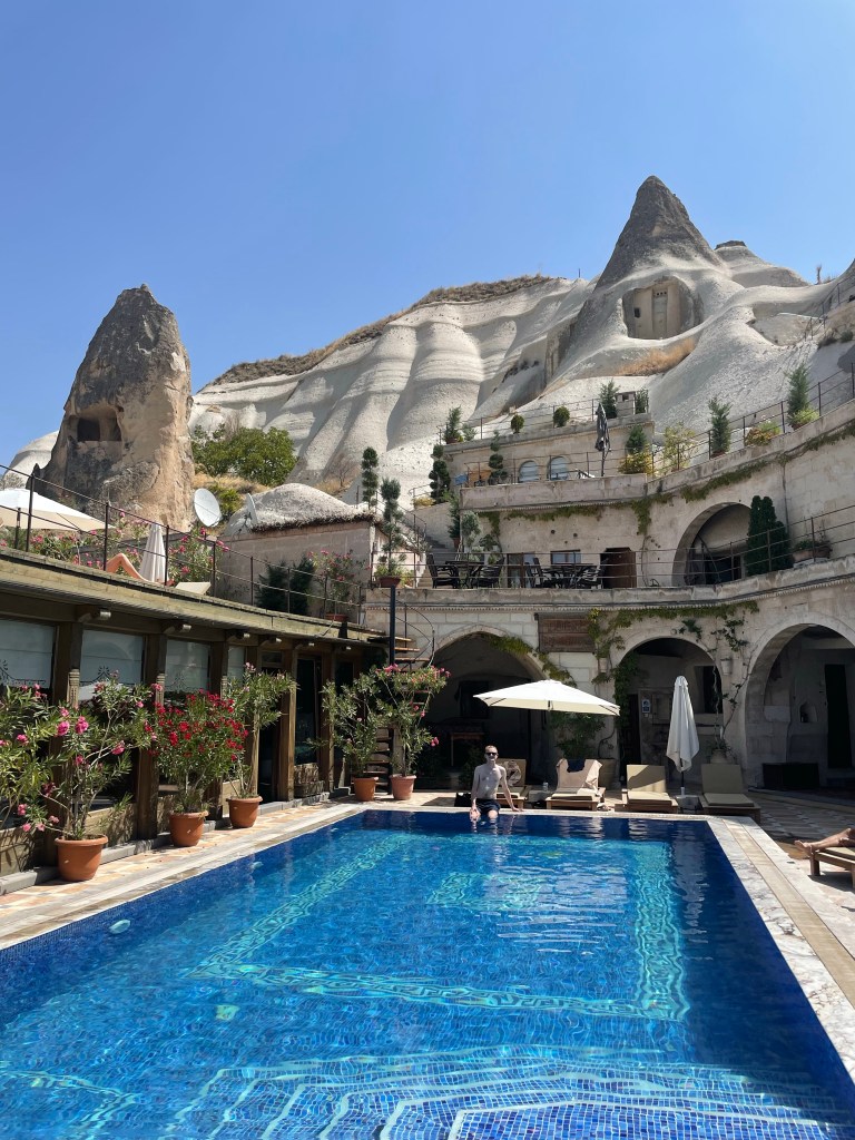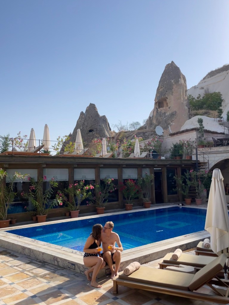 For a little background to those that don’t know (hi mom) Cappadocia is well known for their rock structures, caves and therefore cave hotels. The local Cave House Hotel is one of the most recommended on the internet and now I know it is for good reason. We spent the morning and afternoon of our first day there chilling by the pool and napping a bit after our early morning balloon ride. Also, the breakfast was incredible- they just kept bringing out more and more dishes.