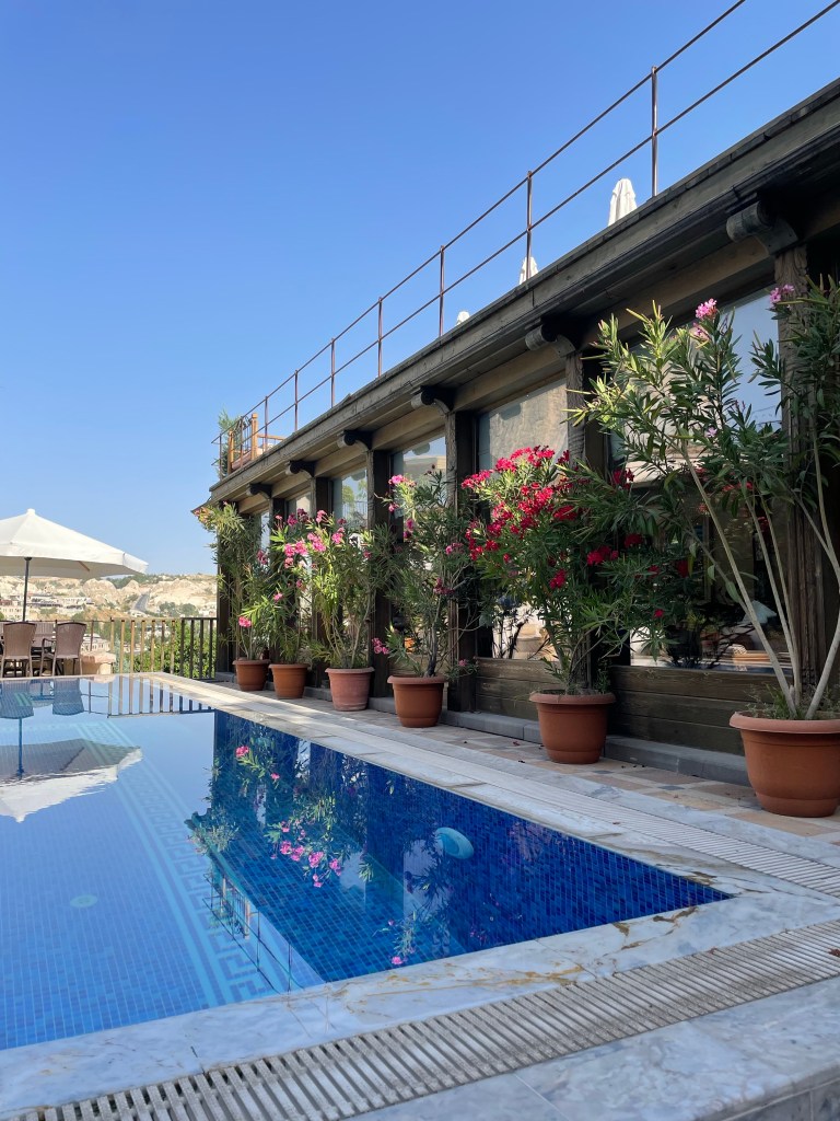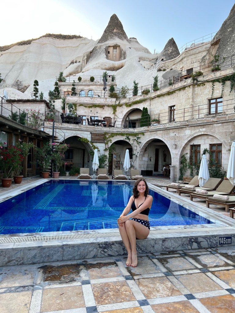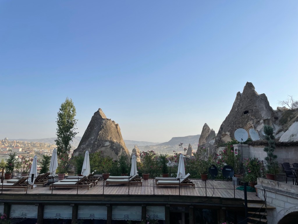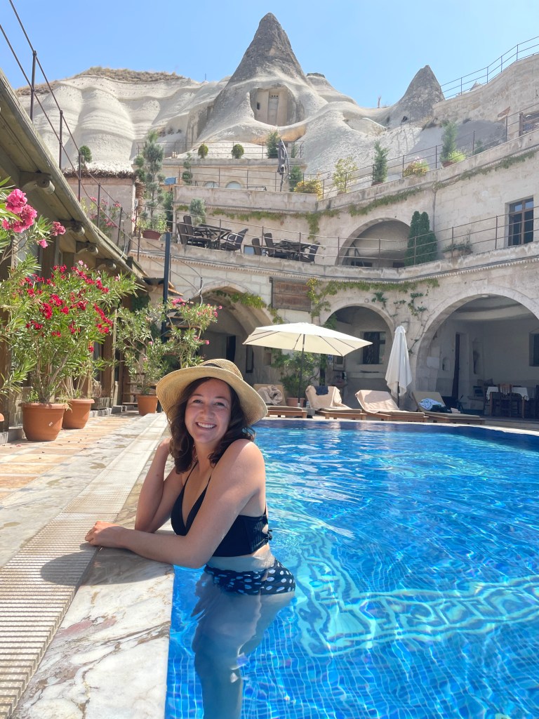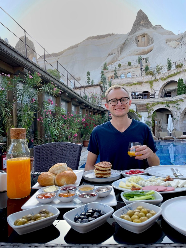 For a little background to those that don’t know (hi mom) Cappadocia is well known for their rock structures, caves and therefore cave hotels. The local Cave House Hotel is one of the most recommended on the internet and now I know it is for good reason. We spent the morning and afternoon of our first day there chilling by the pool and napping a bit after our early morning balloon ride. Also, the breakfast was incredible- they just kept bringing out more and more dishes.
