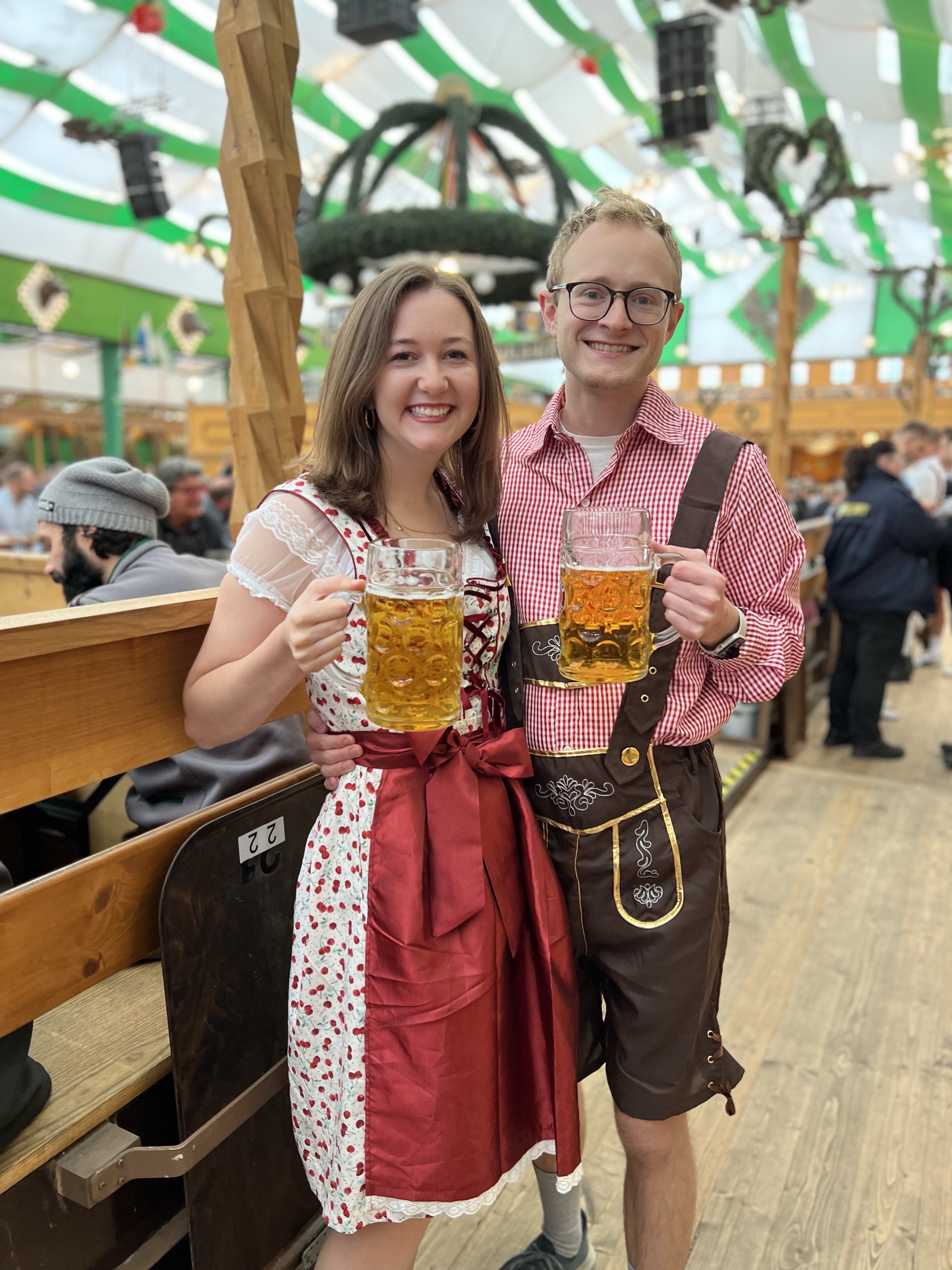 3) Dress up! It is so fun to wear dirndls and lederhosen. About 80% of people were dressed up so you would stand out without it! We got ours online before although they also sell tons in munich. It can vastly range in price from more Halloween costume ones for around $30 to real authentic ones for $300.