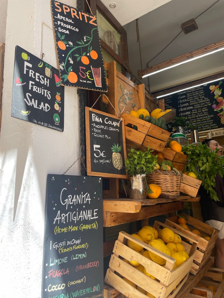 For our first couple days we drove over to Cefalu which is a beautiful coastal fishing village on the north side of the island. It was gorgeous to relax at the hotel pool, wander to the beach, and we also went on a food walking tour. It was suppose to be a group tour, but Ryan and I were the only ones that ended up signing up so it began a personal tour. One of my favorite things we tried is granita which is a ice/juice with fruit. We got to try a few different flavors. I will say, hot take, but Sicilian food isn’t my favorite when it comes to Italian food. Mostly because I have a shellfish and fish allergy so I have to be really careful and a lot of the food is fish being an island and all.
